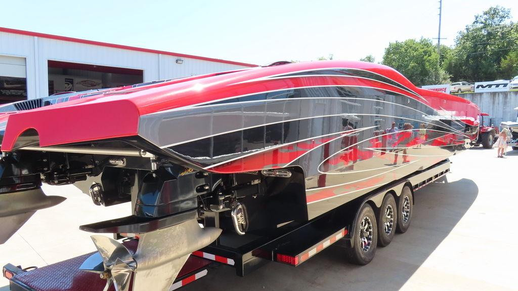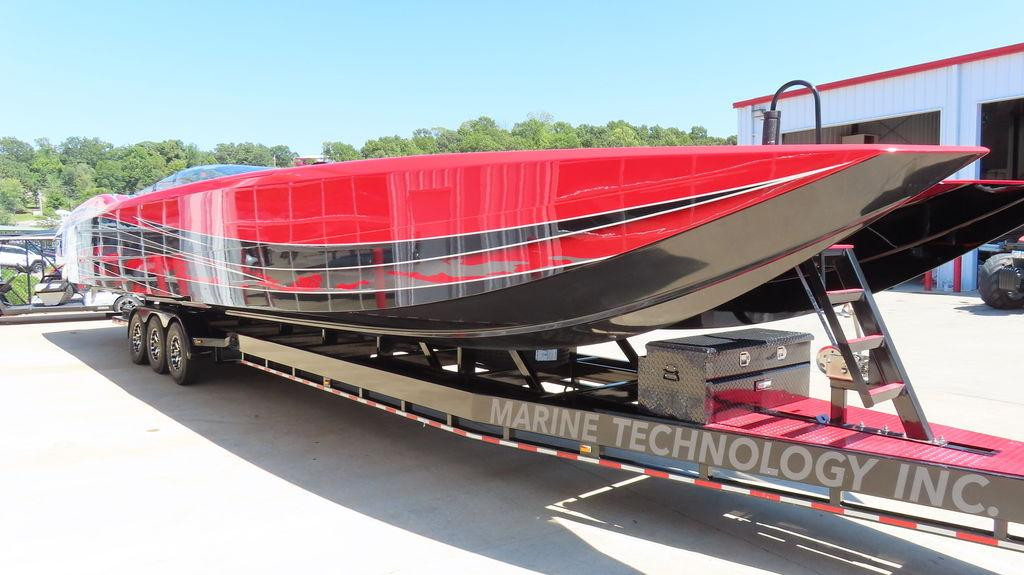 2015 MTI 48 powered by twin Mercury Racing QC4V1350s with 150 hours, M8 drives, Fresh Paint, Billet Aluminum Cleats, Complete service including valve lash all done by Performance Boat Center in Spring 2024! Garmin 5212, Garmin 5208, Garmin 7607 on rear console, Mercury Vessel View, VHF radio, Fusion/JL Audio, Sea Deck flooring, shock absorber system for front seats, LED underwater lights, onboard charger, cockpit cover, and Heritage custom trailer included. Financing and transportation available.