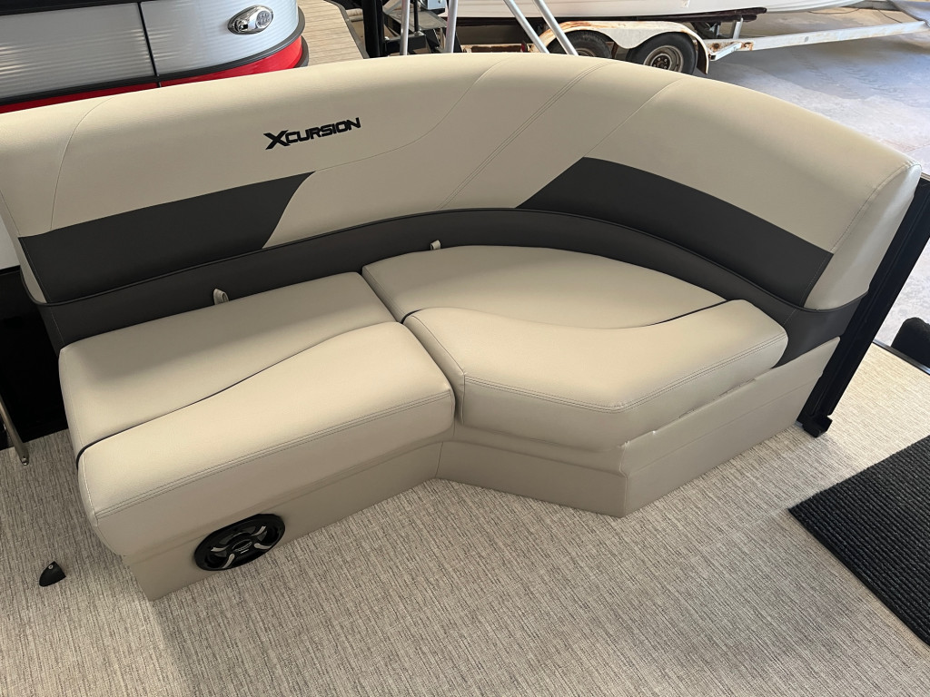 2023 XCURSION 243 PFX WITH HONDA 200 HP AND EZ LOADER TRAILER. THIS IS AN ANGLER MODEL WITH TWO (2) MID-BACK FISHING SEATS, LIVEWELL WITH BLACK ACRYLIC TOP INCLUDES CUP HOLDERS AND ROD HOLDERS. SPORT TOON WITH LIFTING STRAKES, BLACKOUT RAIL PACKAGE, PREMIUM VINYLS WITH ACCENTS, INFINITY WOVEN FLOORING, WET SOUNDS STEREO WITH BLUETOOTH AND FOUR (4) SPEAKERS, ITALIAN GUCCI STEERING WHEEL WITH TILT, POWER ASSIST STEERING, CENTER IN-TOON SKI LOCKER, RETRACTABLE LADDER AND COLOR MATCHED BIMINI & MOORING COVER.