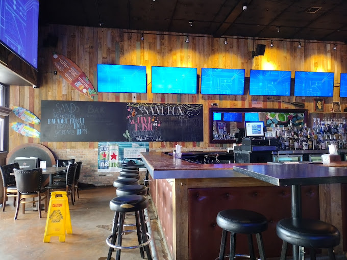 I recently visited Sand Bar + Kitchen and had a great time & no it's not an actual sandbar in the ocean but the atmosphere sure feels like it. The place has a contemporary American vibe, perfect for sports fans. There are large TVs everywhere, making it easy to watch multiple games at once. The patio area is also nice, especially on cool evenings.