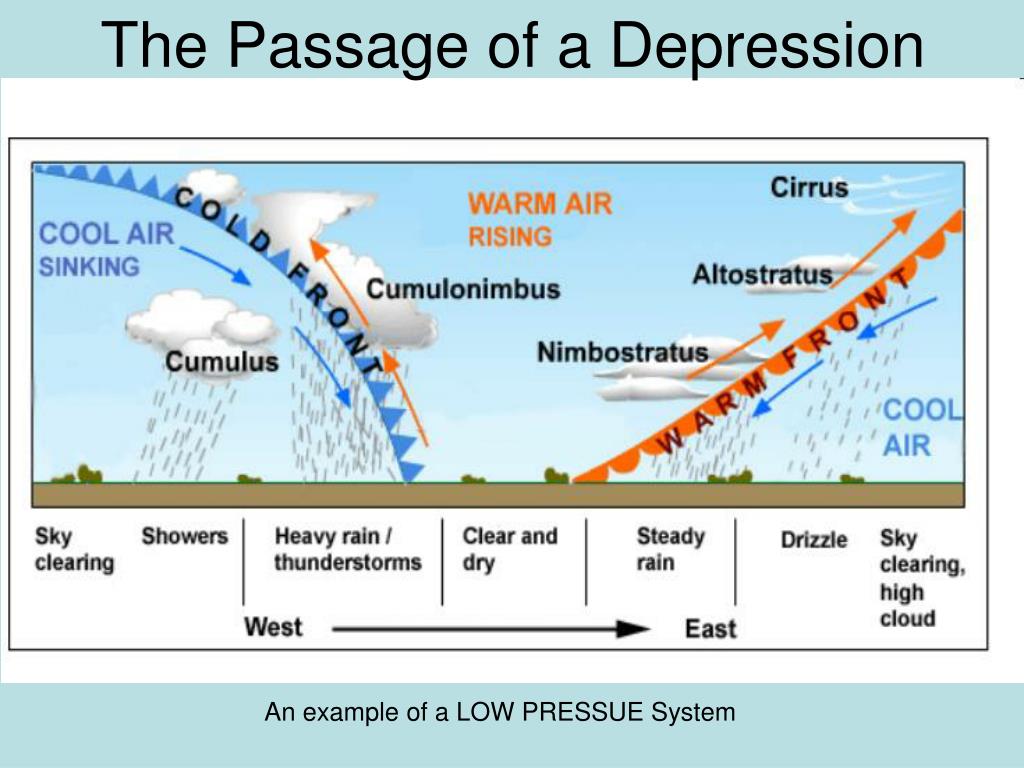 These factors come together to create high and low pressure zones, which in turn create the weather conditions associated with cold and warm fronts.