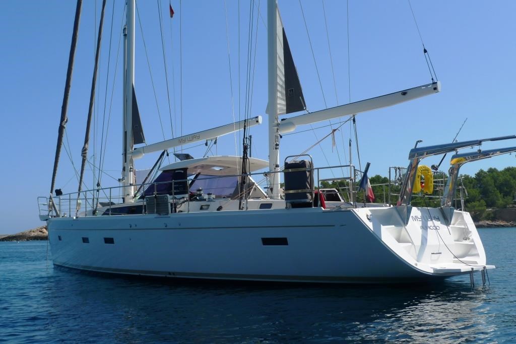 The Amel 64 is a luxurious icon in the performance cruising class, encapsulating high quality, comfort, and robust sailing capabilities. Built by the acclaimed French shipyard Amel, this vessel is known for its superior construction and attention to detail, promising both safety and performance on the open seas. With its ketch rig design, the Amel 64 allows for easy handling by a small crew, making it an ideal choice for long-distance cruising enthusiasts who seek a harmonious balance between comfort and sail handling.