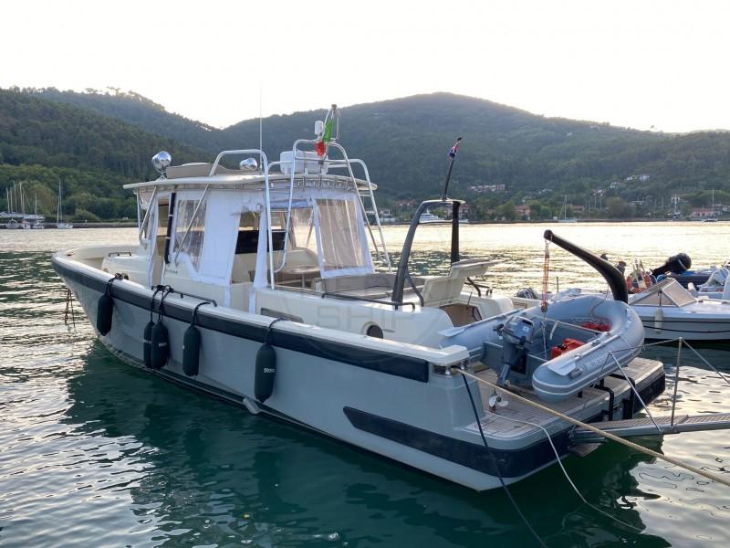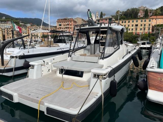 The yacht also features a crew cabin, which is unique for boats in this size range.
