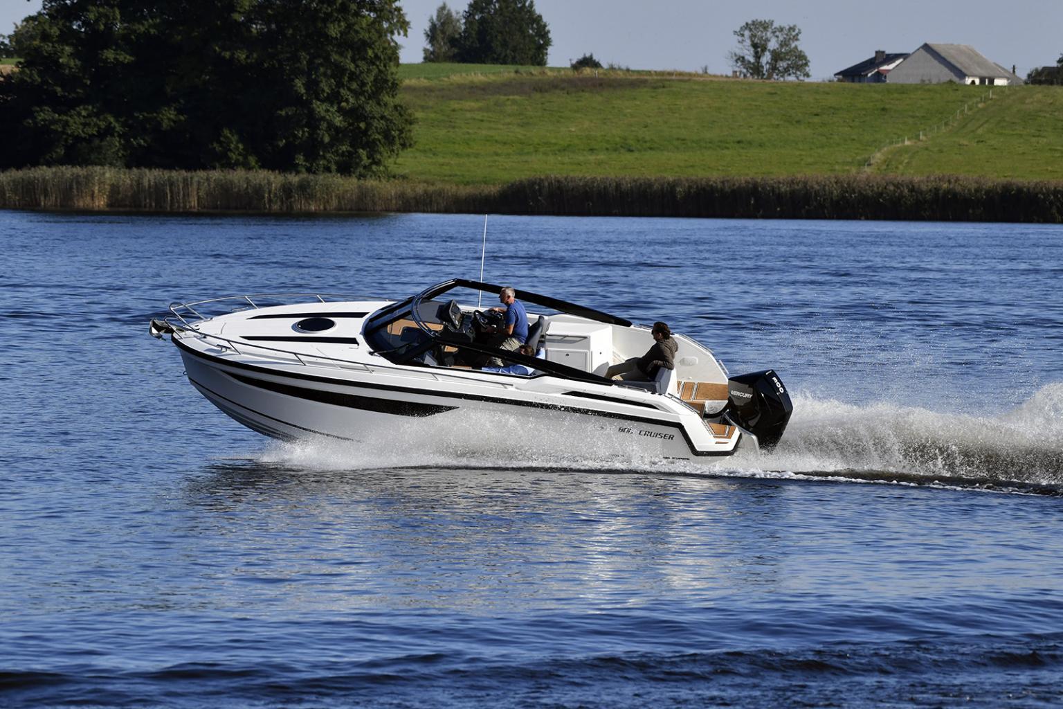 Additionally, the design includes a stylish swept-back grp pillar which not only adds to the boat’s sleek appearance but also supports recreational activities. Customization options for seating and layout allow for a more personalized touch, ensuring comfort whether you’re engaging in sports or relaxing.
