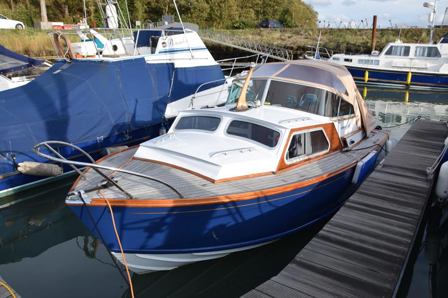 There is a spacious saloon area for socializing or dining, fitted with a foldable table for convenience. The boat's construction includes a foam-cored sandwich hull, contributing to its unsinkable design. Storage compartments are efficiently integrated, providing plenty of room for personal belongings.
