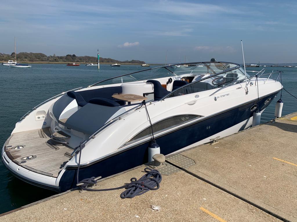 Launched in the late 1980s, this model continues to turn heads with its classic flybridge design and spacious interior. The boat's layout includes two cabins, a well-appointed saloon, and a functional galley, making it ideal for extended trips on the water. Its sturdy construction and seaworthy hull allow for confident navigation in various conditions.