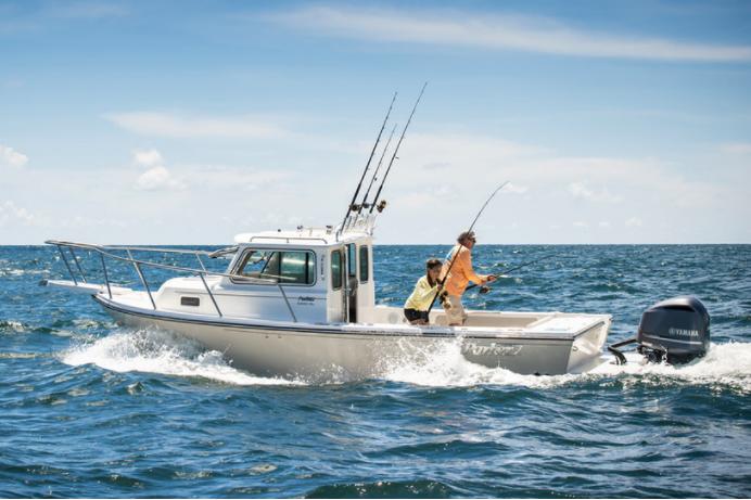The Parker 850 Voyager offers impressive outboard engine performance. It can be equipped with engines ranging from 200 to 350 horsepower.